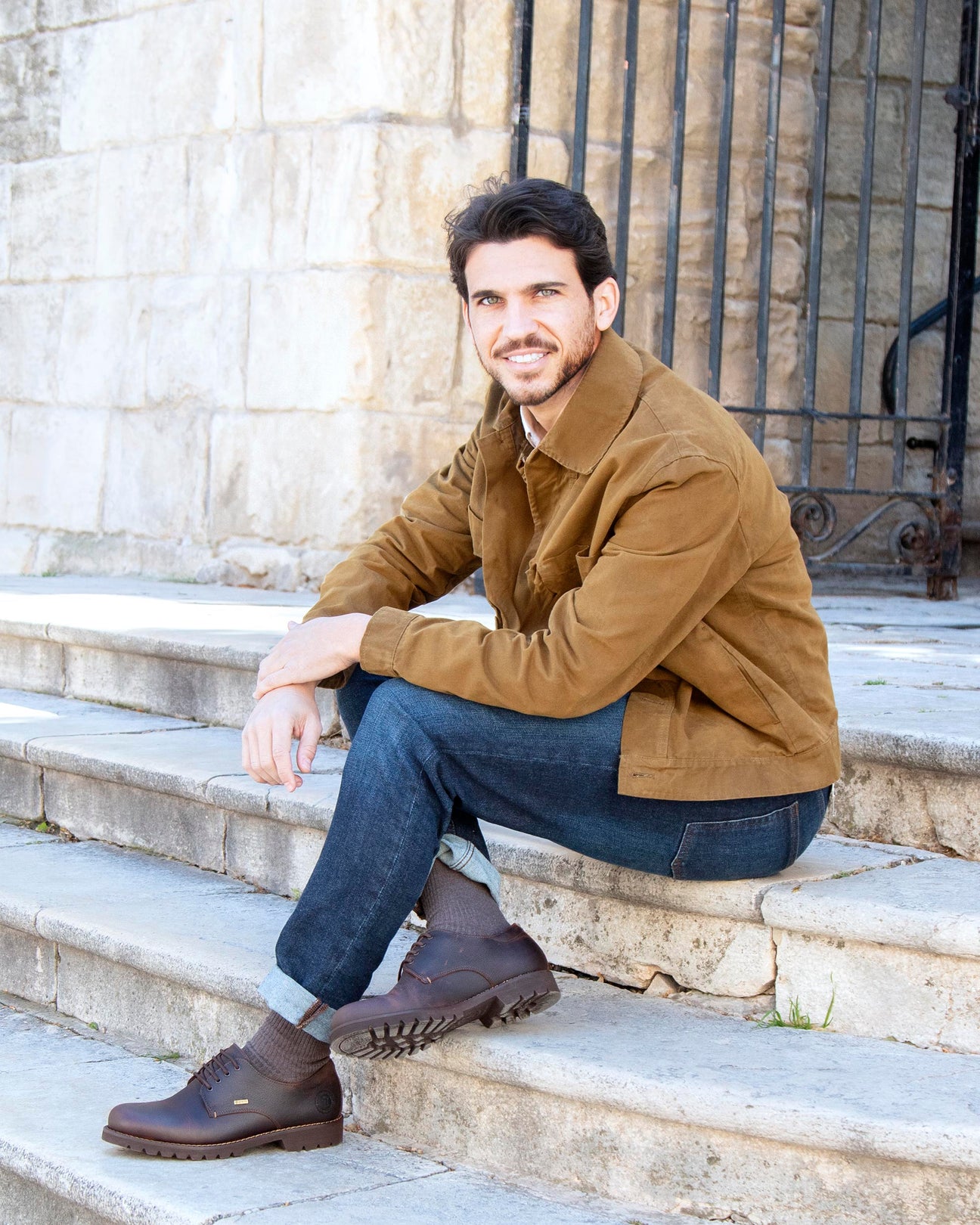 Flat men's Shoe. WATERPROOF Chestnut nappa grass leather. Lace-up Closure. Gore-Tex lining. Removable anatomical insole. Natural, flexible and durable rubber sole. Heel height: 4 cm. 100% Made in Spain.