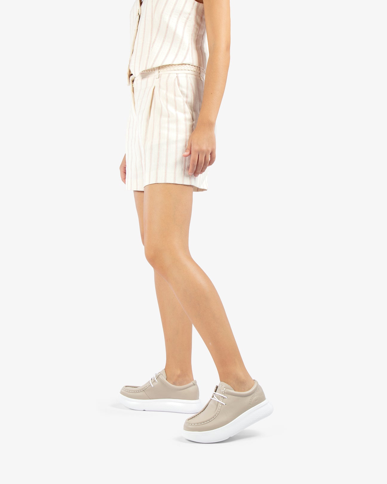 Women's shoes. Taupe nappa leather. Lace-up Closure. Leather lining. Removable anatomical insole. Lightweight, flexible and strong EVA rubber sole. Shaft height: 10,3 cm. Heel height: 4.7 cm. 100% Made in Spain.
